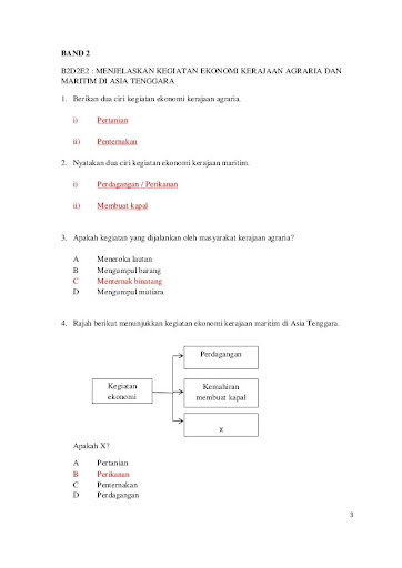 Prasejarah sejak 40, 000 tahun yang lalu. Bahan pewarna merah yang diperoleh daripada batu kawi atau batu lada. Masyarakat zaman prasejarah adalah masyarakat yang masih mengandalkan alam untuk bertahan hidup. Kemunculan tamadun awal manusia pilih jawapan yang paling tepat.